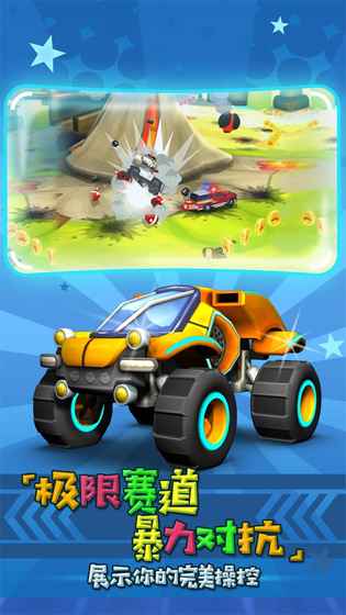 2、极限赛道,暴力对抗:赛道暗藏玄机,不仅有急弯陡坡,还有各种障碍物等待挑战;