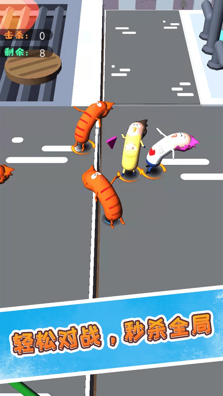 玩家需要与形形色色的香肠人展开激烈对战,同时可以招募志同道合的伙伴组建战队,因为单打独斗往往难以应对复杂的战场局势。游戏鼓励玩家利用角色灵活的特性攻击敌人弱点,无论是高空跳跃还是地形利用,都能创造出独特的战斗方式。随时随地的快速匹配系统让玩家可以立即投入战斗,通过简单的操作就能施展致命一击,争夺"最强香肠杀手"的荣誉称号。