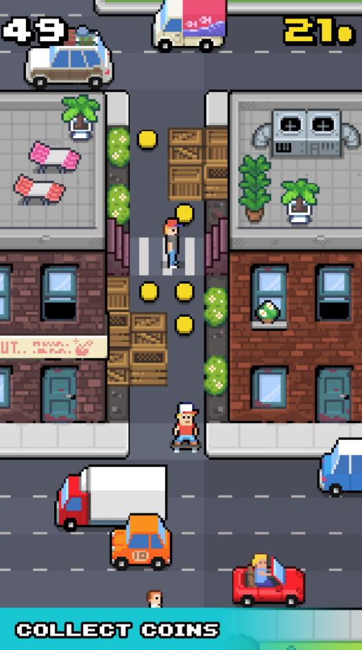 3、道奇汽车,行人和火车。动态障碍系统让每次游戏都充满新鲜感,AI控制的车辆和行人会随机改变行进路线,考验玩家的临场应变能力。火车关卡更是本作的特色挑战之一。