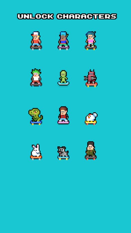 2、收集所有可爱和独特的角色。角色系统包含12个基础角色和8个隐藏角色,每个角色都有专属的滑板风格和特殊动作。收集过程充满惊喜,某些稀有角色需要完成特定条件才能解锁。