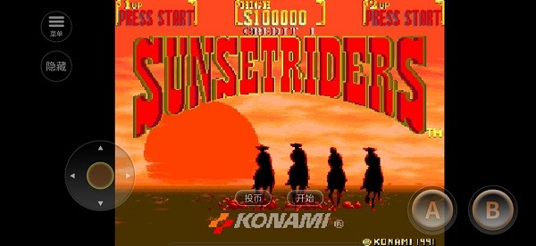 《落日骑士》原名《西部牛仔》,是街机平台上极具代表性的横版射击游戏。游戏以美国西部拓荒时代为背景,玩家将扮演赏金猎人追捕通缉要犯。虽然游戏整体难度适中,但后期的BOSS战仍颇具挑战性。本作最大特色是支持最多四人同时联机作战,这在当时的街机游戏中实属罕见。四位牛仔角色各具特色,从枪法精湛的牛仔哥到幽默风趣的浪人哥,每个角色都给人留下深刻印象。游戏在紧张刺激的战斗之余,还穿插了许多搞笑元素,比如角色被火烧到时夸张的动画表现,为游戏增添了不少欢乐气氛。