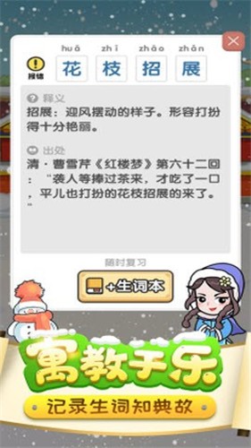 游戏采用体力值系统设计,每通关一次消耗1点体力,体力耗尽后需要等待自然恢复或通过签到获取。每日签到除了能获得体力补充外,还有机会抽到双倍奖励卡。排行榜功能让玩家可以与其他用户比拼成语知识储备,增加了竞技乐趣。特色"辨真假"玩法精选了100多个易错成语,通过趣味测试帮助玩家巩固知识。游戏题库会定期更新,涵盖从小学到成语词典级别的各类成语,既适合初学者入门,也能满足成语爱好者的挑战需求。