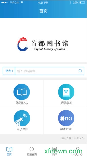 用户可登录首都图书馆移动客户端:可以绑定北京市公共图书馆网络联合读者卡(一卡通),实现图书检索和部分数字资源阅览服务;
