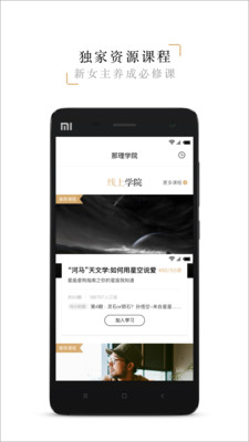 3.秉承"修身、齐家、治业、晓天下"的课程原则,帮助中产家庭女性,进阶成为时代新女主。平台注重培养女性的综合素质,通过系统化的课程体系,全面提升用户的各项能力。