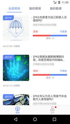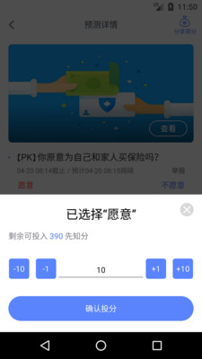 1.客观性话题预测:系统会实时显示正反双方的先知分投入情况,你可以选择跟随多数派,也可以坚持自己的判断支持少数派。每个话题都有明确的揭晓时间,届时才能知道真理究竟掌握在谁的手中。这种机制让预测过程充满悬念和挑战性。