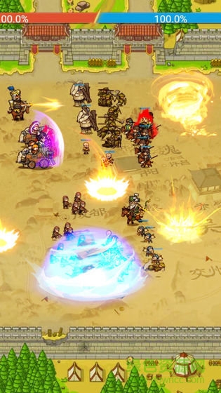 游戏采用自主研发的引擎技术,在保持Q版画风的同时,完美呈现了三国战场的恢弘气势。精致的特效处理让每个技能释放都极具视觉冲击力,而幽默的角色对话则为紧张的战争氛围增添了几分轻松。这种独特的艺术风格让玩家在享受策略乐趣的同时,也能获得轻松愉快的游戏体验。