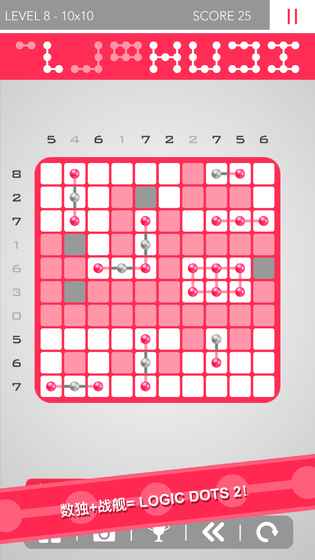 《LogicDots2》将数独和战舰游戏融为一体,让你体验奇妙独特的组合,它简单并且逻辑性很强,但是其挑战性会不断增加,同样也会给你带来惊喜和愉悦。游戏在各大应用商店都保持着4.8分以上的高评价,被许多玩家誉为"手机端最佳逻辑解谜游戏"。
