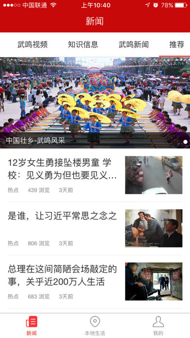 7、特色内容:组建30人本地采编团队,保证每日原创内容产出量超50条。开设"武鸣24小时"直播频道,轮播重要场所实时画面。重大新闻采用"事件轴"呈现方式,清晰展示事态发展全过程。
