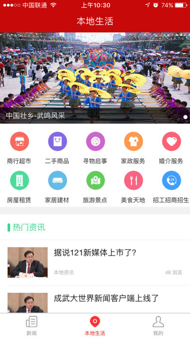 武鸣头条app深耕本地化内容,既是新闻传播者也是文化展示窗口。作为武鸣地区权威的信息平台,它不仅实时更新政府政策、民生热点等硬新闻,更通过特色栏目深度挖掘当地民俗风情、传统节庆等软文化。用户可以通过图文、视频等多种形式,直观感受武鸣的城市变迁与人文底蕴,同时该app还承担着对外宣传武鸣社会经济建设成就的重要使命,让世界看见武鸣的发展活力。