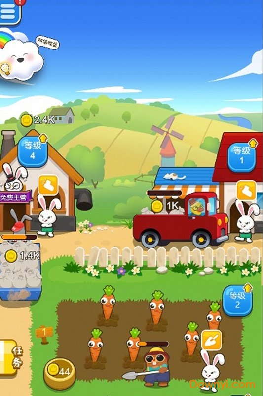 3、采用精美卡通式游戏画面,色彩鲜艳明快,视觉效果出众,开垦荒地建造更多农田可显著提高收益