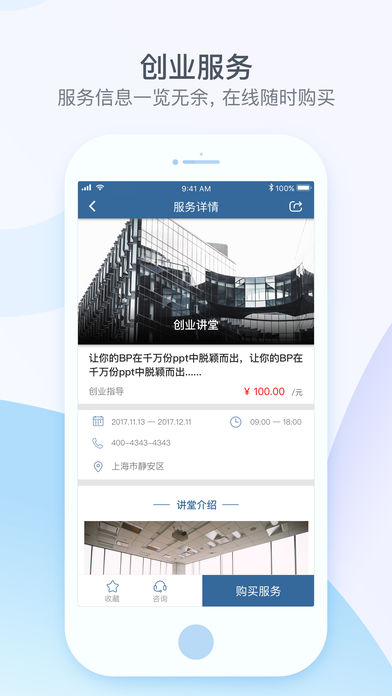 1.更多优质服务,创业办公随时掌握:平台不仅提供基础办公场地预订,还整合了工商注册、知识产权等增值服务,让创业者可以一站式解决各类办公需求。