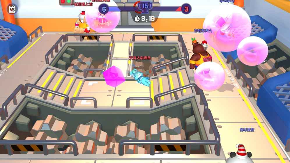 3、6个强交互性的场景:精心设计的游戏场景包含大量可互动元素,从移动平台到危险机关,为对战增添更多变数;