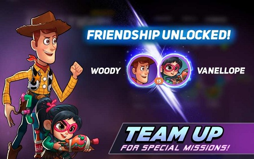 游戏中,玩家将可以和超人、朱迪、艾莎、拉尔夫、云妮洛普等人气角色一起战斗,和好友组队参加团战比赛以及特别活动,就能获得史诗能力来装备和升级你的角色哦。
