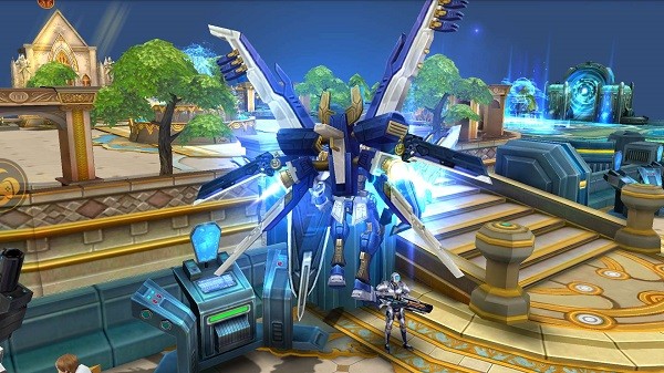 游戏采用精致的3D建模技术,为玩家呈现出一个逼真的机甲世界。你可以使用刀剑、枪械等多种武器,体验不同的战斗风格。游戏中还加入了合体技能系统,让你与队友配合释放强力技能,瞬间秒杀敌人。此外,玩家还可以乘坐坐骑、佩戴翅膀,在战场上展现独特的战斗姿态。丰富的职业技能、天赋技能和属性技能搭配,让你可以打造属于自己的战斗流派,享受连招和打击感带来的极致快感。