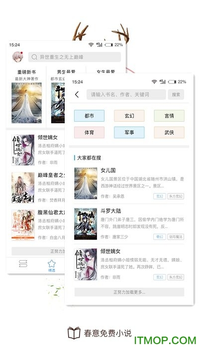 春意小说是一款专为书迷打造的精品阅读应用,汇聚了全网最丰富的正版图书资源。无论您喜欢网络文学还是经典名著,这里都能满足您的阅读需求。平台与多家知名出版社深度合作,每日更新海量优质内容,让您随时享受最新最热的文学作品。创新的智能推荐系统能精准匹配您的阅读偏好,简洁清爽的界面设计带来沉浸式阅读体验。从都市言情到玄幻武侠,从悬疑推理到历史传记,数十万册图书任您畅游书海。