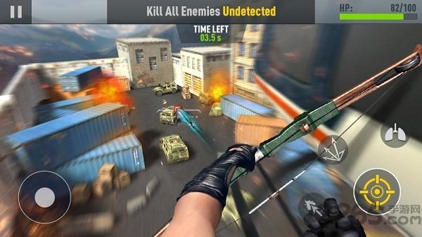 2、关卡内设有可破坏场景物件,玩家可以用爆炸箭引爆油罐制造混乱,或射断吊灯砸晕守卫;