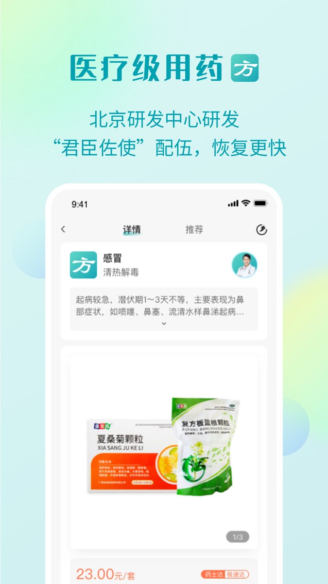 4.医疗级用药,特有用药方案-"方",君臣佐使配伍,效果好,恢复更快!平台中医专家团队根据传统中医理论,结合现代医学研究,为用户定制个性化用药方案。