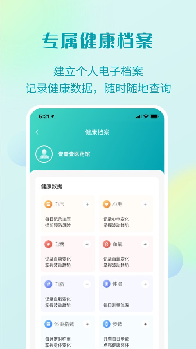 5.电子健康档案,记录用药、病历、健康数据,随时查看,看病就医有据可循!系统自动记录用户的健康数据,生成可视化健康报告,方便用户随时掌握自身健康状况。
