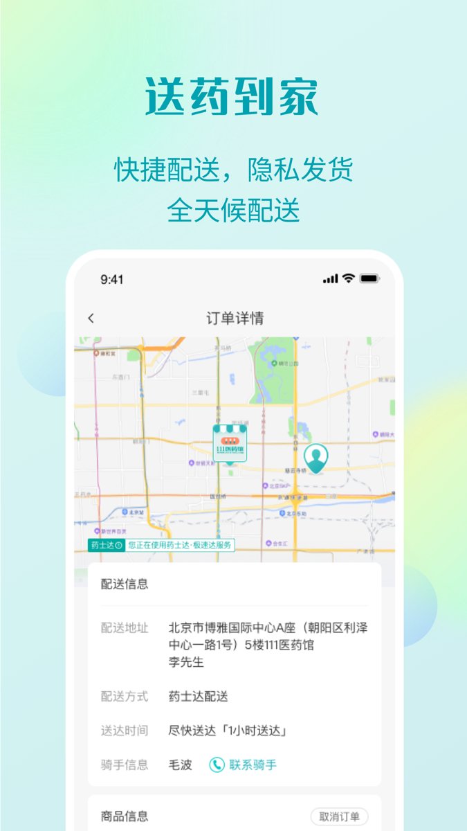 药士达:极速送药服务,定位附近药房,快速送药到家。该服务采用智能调度系统,根据用户位置自动匹配最近药房,确保在最短时间内完成配送,特别适合紧急用药需求。