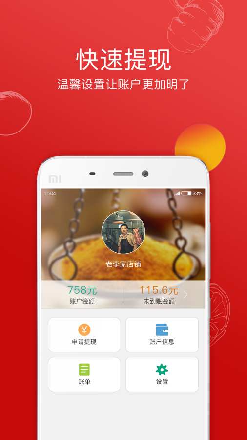 温馨设置让账户更加明了,提供详细的收支明细报表和经营数据分析。提现申请即时处理,资金到账快,手续费透明,财务对账更轻松。