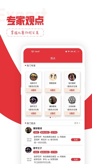 【比赛观点】各路草根足彩竞彩专家汇聚如此,独到的足球分析视角,让您更全面的了解比赛信息,从而可以帮助您更加深入了解到比赛里的细节。我们的专家团队不仅提供赛前预测,还会在赛后进行深度复盘,分析战术布置和关键球员表现。用户可以通过点赞、评论等方式与专家互动,共同探讨比赛中的精彩瞬间。平台还会定期举办线上讲座,邀请知名解说员和退役运动员分享专业见解。