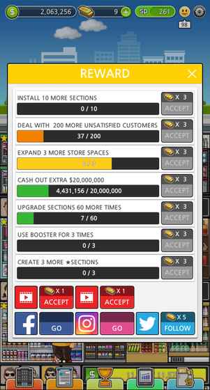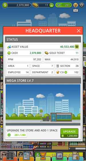 随着业务规模扩大,你可以通过安装更多功能区来扩展商店空间,获得更大的经营场所和更多收入机会。游戏提供了多种扩张方式,包括楼层扩建、分店开设、连锁经营等。通过完成特定经营目标,你还能获得丰厚奖励,用于加速业务发展,最终打造属于你的商业王国。