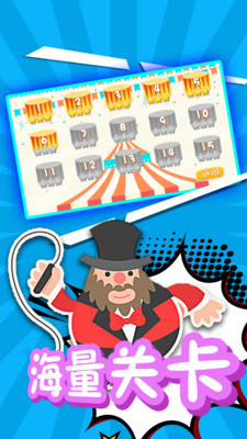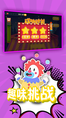1、可爱的马戏团画面:游戏采用色彩鲜艳的卡通风格,打造出一个充满欢乐氛围的马戏团世界;
