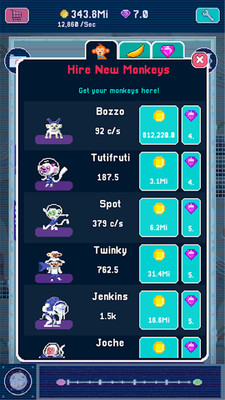 在这款独特的太空冒险游戏中,玩家将扮演一位猴子培育专家,驾驶飞船在浩瀚宇宙中探索。游戏中有数十种不同品种的猴子等待收集,玩家需要将两只相同品种的猴子进行合成,促使它们进化成更高级的形态。随着猴子不断进化,玩家可以解锁新的星系区域,探索更遥远的太空。游戏还设置了丰富的任务系统,完成挑战可以获得特殊奖励,为玩家带来持续的游戏动力和成就感。