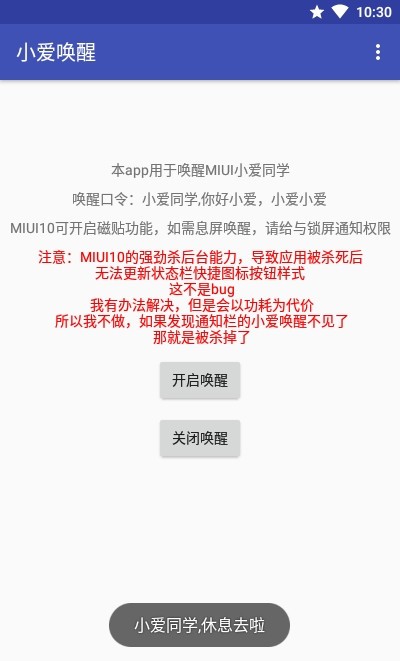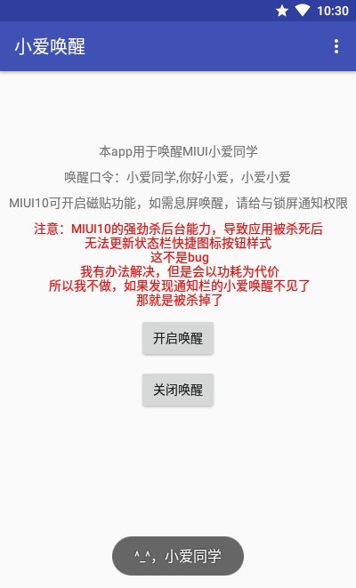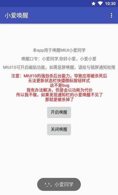本应用专为扩展小米手机的小爱同学语音助手功能而设计,特别优化了语音唤醒体验。基于MIUI10深度适配,确保系统兼容性和运行稳定性。应用支持息屏唤醒功能,用户只需开启锁屏通知权限即可实现随时随地的语音交互。新增的状态栏磁贴功能让操作更加便捷,一键即可快速启动各项功能。针对不同型号的小米手机进行了专项优化,确保在各种硬件配置上都能流畅运行。同时应用还特别注重隐私保护,所有语音数据均采用本地处理,不上传云端,保障用户信息安全。