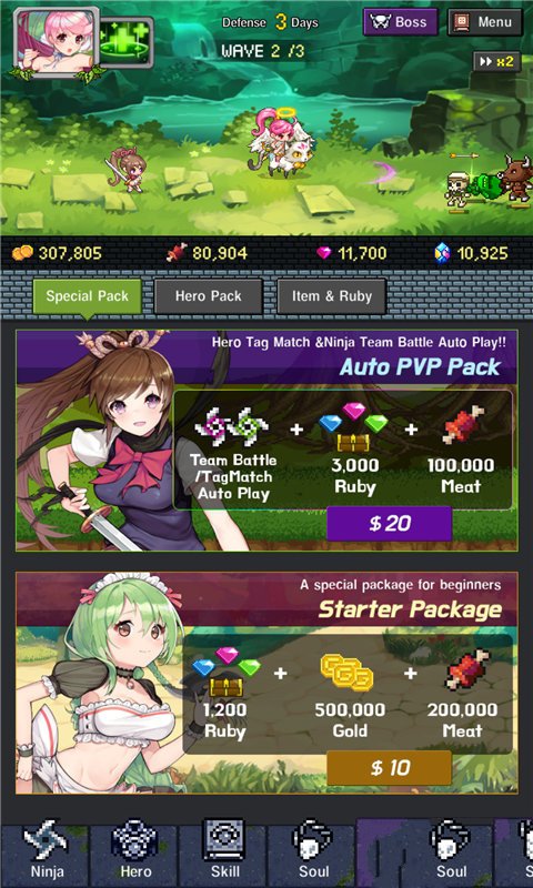 3、将可爱的像素风格与独特的忍者主题完美结合,玩家需要在大陆上收集并培养各种萌系忍者娘,组建最强战队参与史诗级战争。