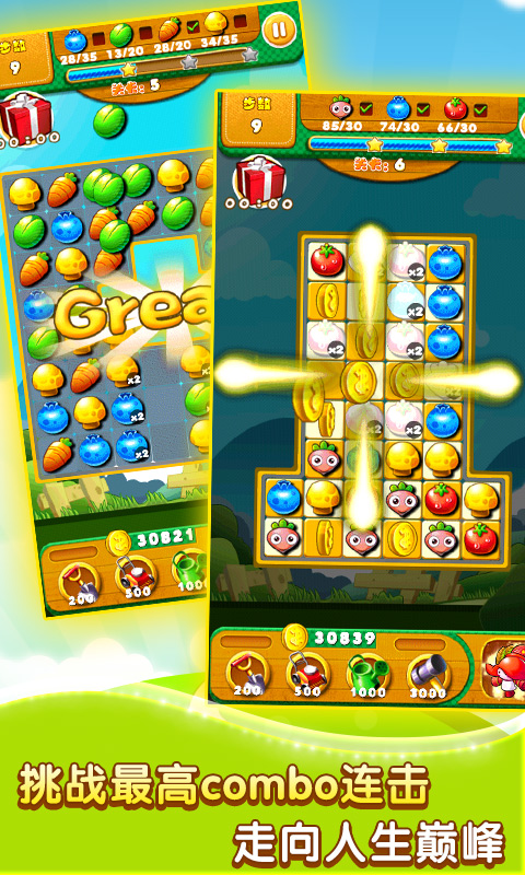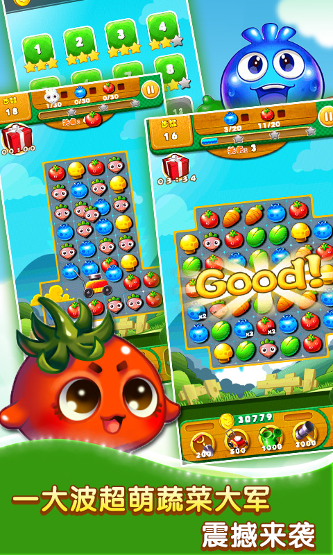 游戏最具创新性的特色在于引入了数量叠加机制,当玩家消除带有数字标记的蔬菜时,不仅能获得基础分数,还能触发连锁叠加效果,让得分呈几何级数增长。超萌可爱的蔬菜造型设计充满童趣,从圆滚滚的胡萝卜到憨态可掬的西红柿,每个角色都活灵活现。游戏画面采用明亮鲜艳的色彩搭配,配合精致的动画效果,打造出令人赏心悦目的视觉体验。丰富多样的玩法模式包括经典闯关、限时挑战、特殊任务等,配合强力炫酷的道具系统,让游戏过程充满变数。精心设计的上百个关卡难度循序渐进,从简单入门到极具挑战性的复杂布局,保证玩家能获得持久的游戏乐趣。