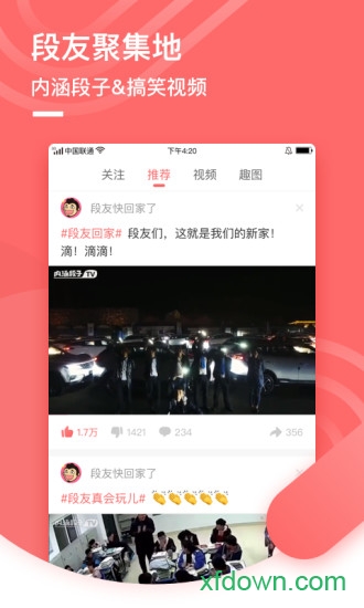 神段子是一款专为搞笑爱好者打造的娱乐社区应用,汇聚全网最新最热的搞笑视频和段子内容。在这里,你不仅能欣赏到各类爆笑视频和内涵段子,还能看到网友们的精彩神评,让你笑到停不下来。平台涵盖多种搞笑类型,支持用户互动评论,打造专属段友圈。无论你是想放松心情还是寻找志同道合的朋友,这里都能满足你的需求。快来加入神段子大家庭,体验不一样的欢乐时光!