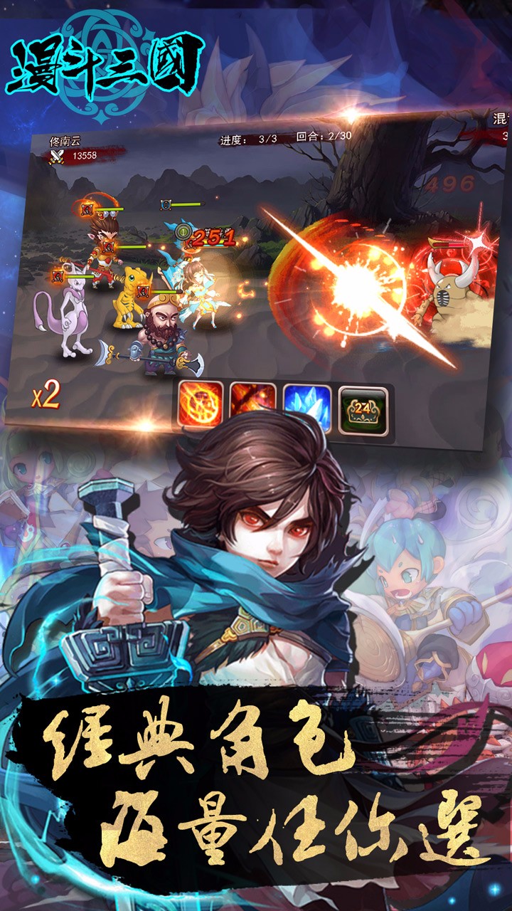 《漫斗三国》以清新卡通风格重新诠释三国乱世,通过策略卡牌玩法带来耳目一新的体验。游戏深度还原了官渡之战、赤壁之战等经典战役场景,玩家可自由搭配五虎上将、魏国谋士等数百位武将卡牌。独创的兵种相克系统与阵型调整功能,让每场战斗都充满变数。随着主线剧情推进,玩家不仅能重温桃园结义、三顾茅庐等历史事件,还能解锁武将专属剧情,深入了解角色背后的故事。实时PVP竞技场与跨服国战玩法,更将策略对决的乐趣提升到全新高度。