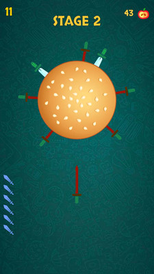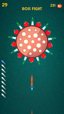 游戏操作简单但极具挑战性:1、点击屏幕即可投掷飞刀,操作简单易上手;2、需要精准计算飞刀轨迹,使用限定数量的飞刀击中旋转的水果中心;3、必须小心避开已经插在水果上的其他刀柄,否则游戏就会失败;4、通过游戏可以收集金币,解锁更多造型独特的飞刀,包括带有特殊效果的忍者飞刀。每把飞刀都有不同的飞行特性和视觉效果,玩家可以根据自己的喜好和游戏策略进行选择。游戏还设置了阶段性BOSS挑战,为玩家带来更多成就感。