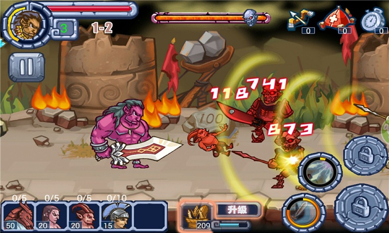 - 士兵为自动前进攻击,同时加入了独特的英雄操控系统,玩家可以亲自指挥英雄作战