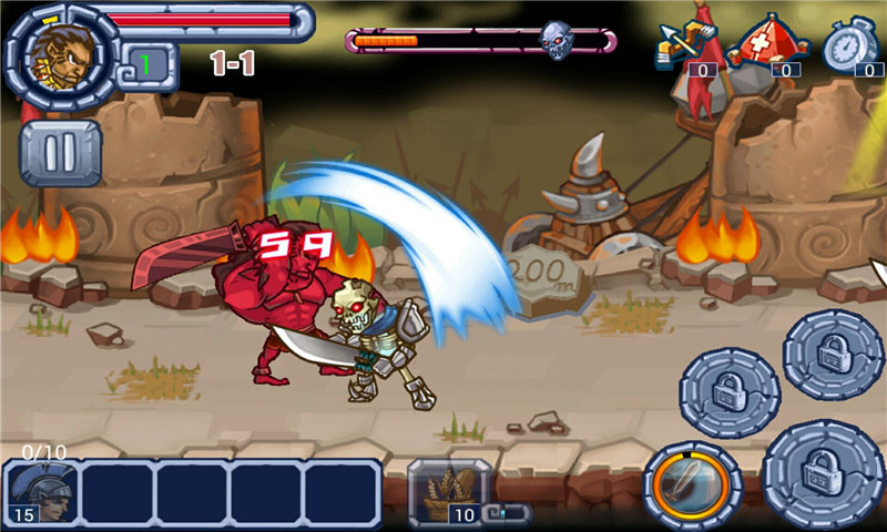 - 点击屏幕前方来控制角色移动,点击界面右下方的按钮释放技能和攻击,操作简单直观