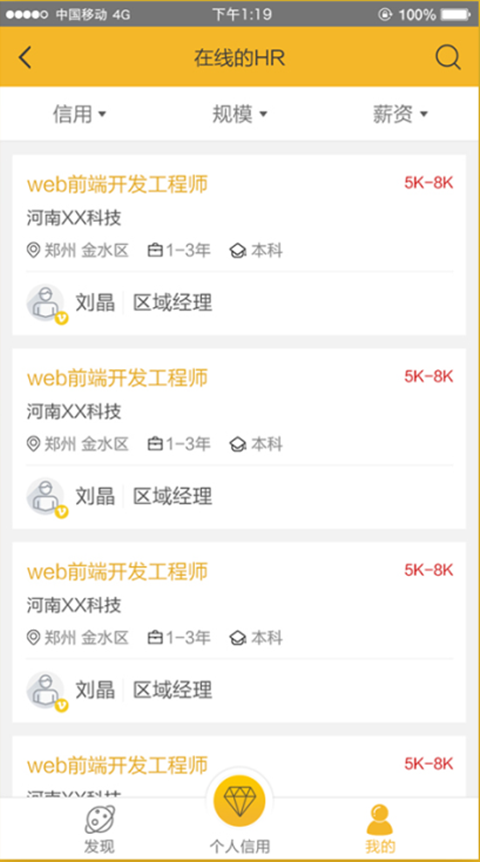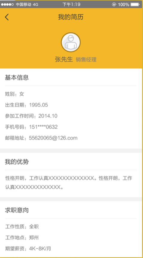 【跳槽更简单】独家职业状态管理功能,可设置"观望期"、"急求职"等不同状态,智能调整推荐策略。