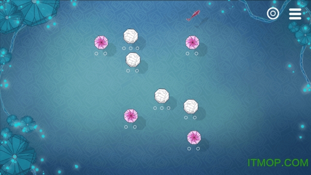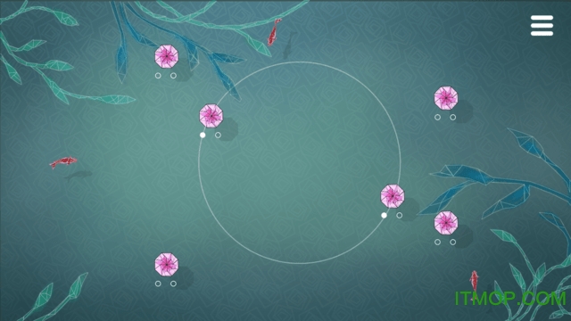 画面、配乐、主题、氛围,都是古典雅致的国风。玩法是用手指点触水面(屏幕)会生成涟漪,经由涟漪的扩散来实现唤醒莲花、吹开荷叶等等。过关的方式可能并不唯一,也不一定操作要求十分精确,而想要三星通关的诀窍归结到底,就是"圆的智慧"。