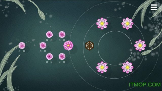 玩法:用点触制造水波涟漪,当两个涟漪相切点在未开的莲花瓣上之时,花瓣就会打开。目标是用最少的水波圆环,催开所有的花瓣。