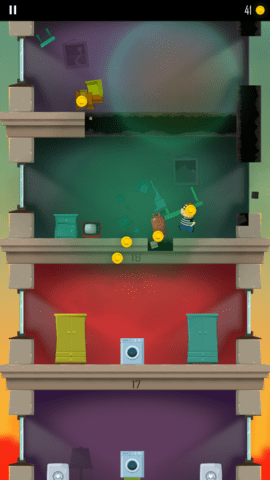 1、直观的上下滑动操作让游戏极易上手,但想要精通需要掌握精准的时机判断。在不同楼层间穿梭时,要注意预判落脚点。