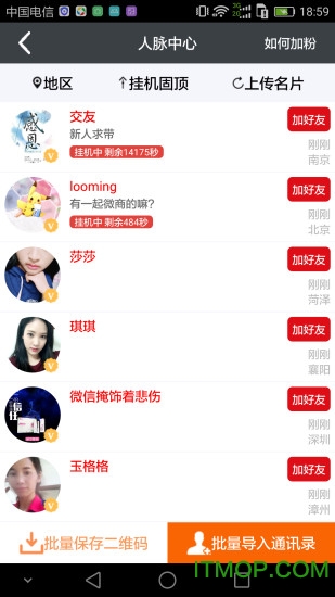 粉丝爆击手机版提供一键导入客源功能,可将客户信息快速导入手机通讯录,并支持自动添加微信、QQ等社交平台好友,大幅节省人工操作时间。软件还具备强大的营销辅助功能,不仅能帮助用户清理库存商品,还能协助招募代理,为微商从业者提供全方位的业务支持。这些特色功能让您的微商生意更加得心应手,有效提升销售业绩。