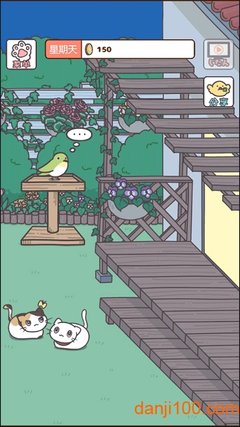 2、将获得的各种玩具放在院子中,吸引小猫;庭院系统支持自由布置,猫爬架、逗猫棒等道具会吸引不同性格的猫咪前来玩耍,合理搭配可以提升猫咪的幸福指数。