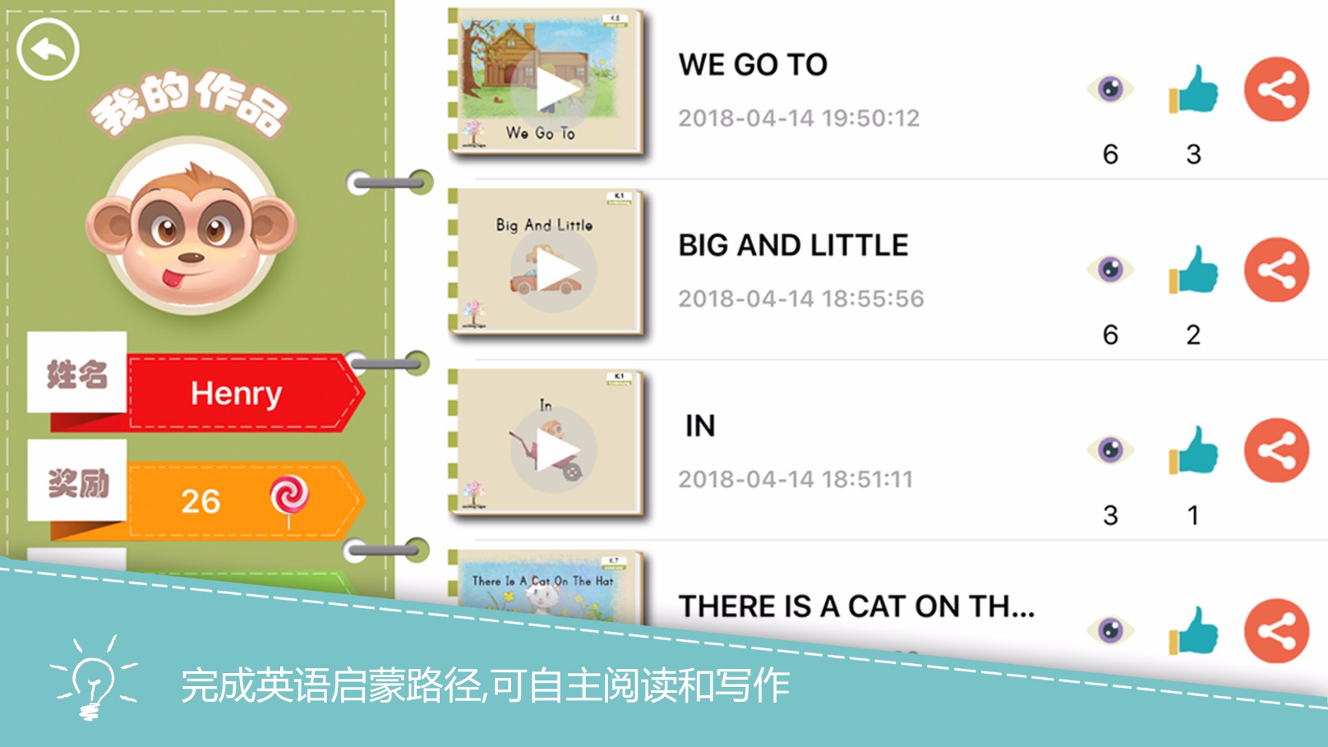 制作自己的分级读物,分享到朋友圈,展示你的英语实力。孩子们可以用学到的单词和句型创作小故事,配上自己绘制的插图。这个功能不仅能巩固所学知识,还能培养孩子的创造力和表达能力。获得点赞和评论更能增强孩子的学习成就感,形成良性循环。