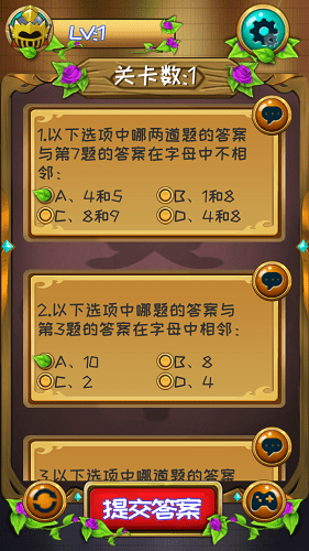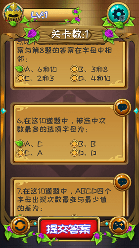 2、连续点击题目右上角的按钮7次可查看当前题目的答案 - 这个隐藏功能为玩家提供了快速查看答案的捷径,但需要特定操作才能触发,增加了游戏的探索乐趣。
