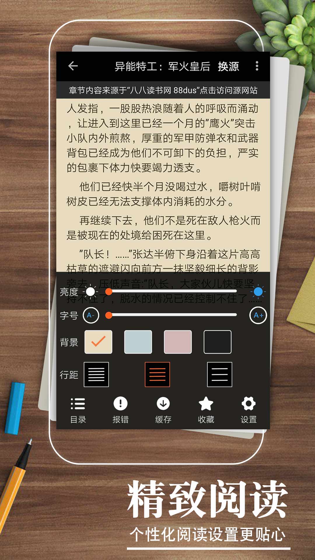 6.纯白界面,阅读无干扰:极简设计风格去除所有冗余元素,支持自定义行距、段距、页边距等排版参数。新增夜间模式和亮度自动调节功能,任何光线环境下都能获得最佳阅读体验。