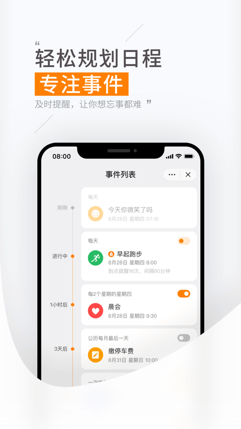 米橙提醒APP是一款专为现代人打造的高效时间管理工具,旨在帮助用户科学规划日程、提升生活效率。无论是繁忙的职场人士还是学生党,都能通过它轻松定制个性化提醒方案,告别遗忘烦恼。该应用融合智能提醒技术与人性化设计,支持多场景、多形式的提醒功能,让时间管理变得简单有趣。从重要会议到生活琐事,从生日祝福到WiFi连接提醒,米橙提醒都能精准捕捉每个时间节点,成为您贴心的私人助理。其直观的时间轴展示和丰富的音效选择,更让日程管理过程充满乐趣。