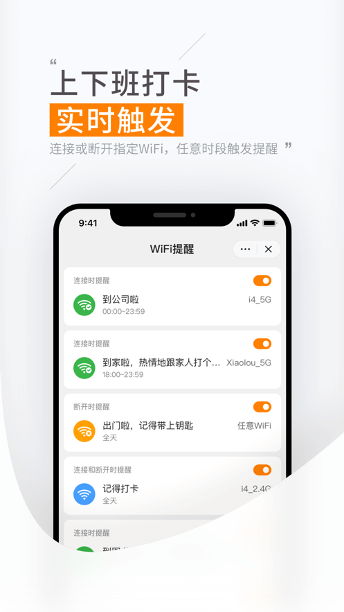 WiFi情景提醒是米橙提醒的专利功能,通过智能识别网络环境触发特定事项。用户可设置到达公司自动弹出当日工作计划,回家连接WiFi后提醒取快递等生活场景。定位精度达到米级,支持多个WiFi热点分组管理。特别适合需要规律作息的人群,比如设置断开卧室WiFi触发晨间routine提醒。企业用户还可将此功能用于考勤管理,员工连接办公WiFi自动记录到岗时间。所有WiFi数据本地加密存储,充分保障用户隐私安全。