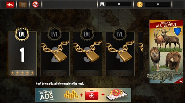 丛林猎鹿将带你深入非洲大草原,体验最真实的野生动物狩猎。作为一款专业的射击游戏,玩家需要使用高精度狙击步枪,在复杂的地形中追踪各种鹿群和其他野生动物。游戏特别注重狩猎技巧的模拟,包括风向计算、弹道轨迹等专业要素。除了常规狩猎,游戏还设置了特殊任务模式,要求玩家在规定时间内完成特定目标的猎杀。逼真的动物AI会让猎物对周围环境保持高度警觉,稍有不慎就会惊动整个鹿群。