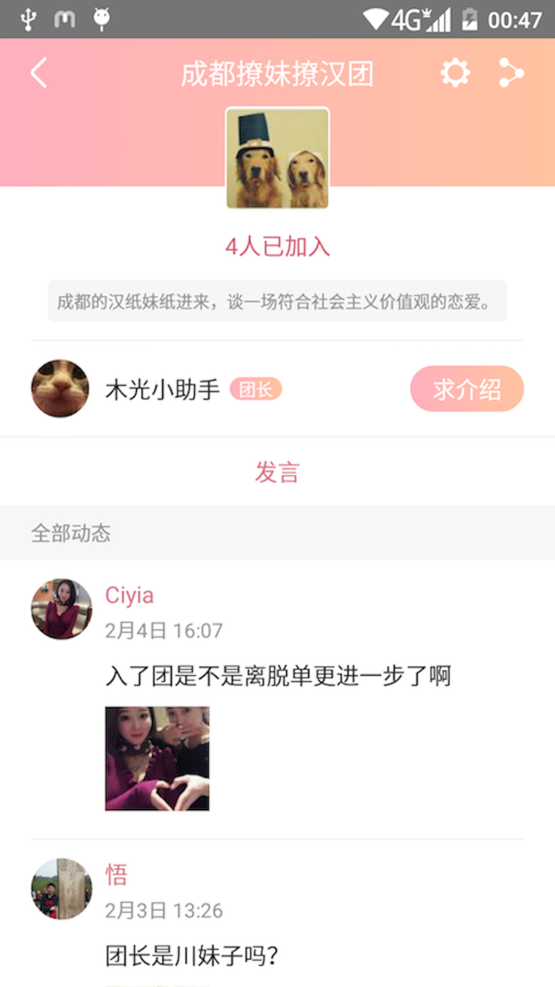 1.单身团增加个人发言功能,让每位成员都能畅所欲言,分享自己的观点和想法。2.单身团可自由发起话题,用户可以创建自己感兴趣的话题讨论组,吸引志同道合的朋友加入交流。3.优化了脱单体验,改进了匹配算法,增加了更多互动功能,让用户更容易找到心仪对象。4.新增了活动报名系统,用户可以更方便地参与线下聚会。5.增强了隐私保护功能,用户可以更灵活地设置个人信息的可见范围。