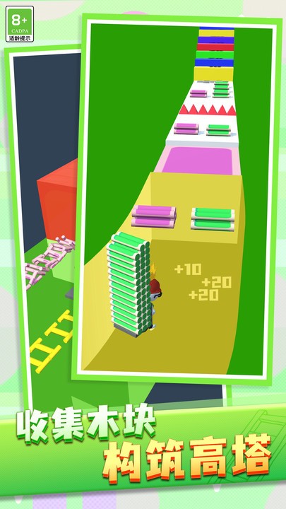 《叠塔大师》是一款融合跑酷与收集元素的创意手游,玩家将扮演永不言弃的建筑工人,在充满未知的旅途中收集散落的木块资源。通过精准的时机把控,你需要将这些木块巧妙堆叠成通天之塔,突破重重障碍向更高处进发。游戏特别设计了动态竞争机制,你可以与全球玩家实时比拼搭建速度,看谁能率先抵达象征胜利的云端之巅。独特的物理引擎让每次堆叠都充满变数,而随着高度增加逐渐缩小的塔基面积,将为挑战带来更刺激的博弈体验。